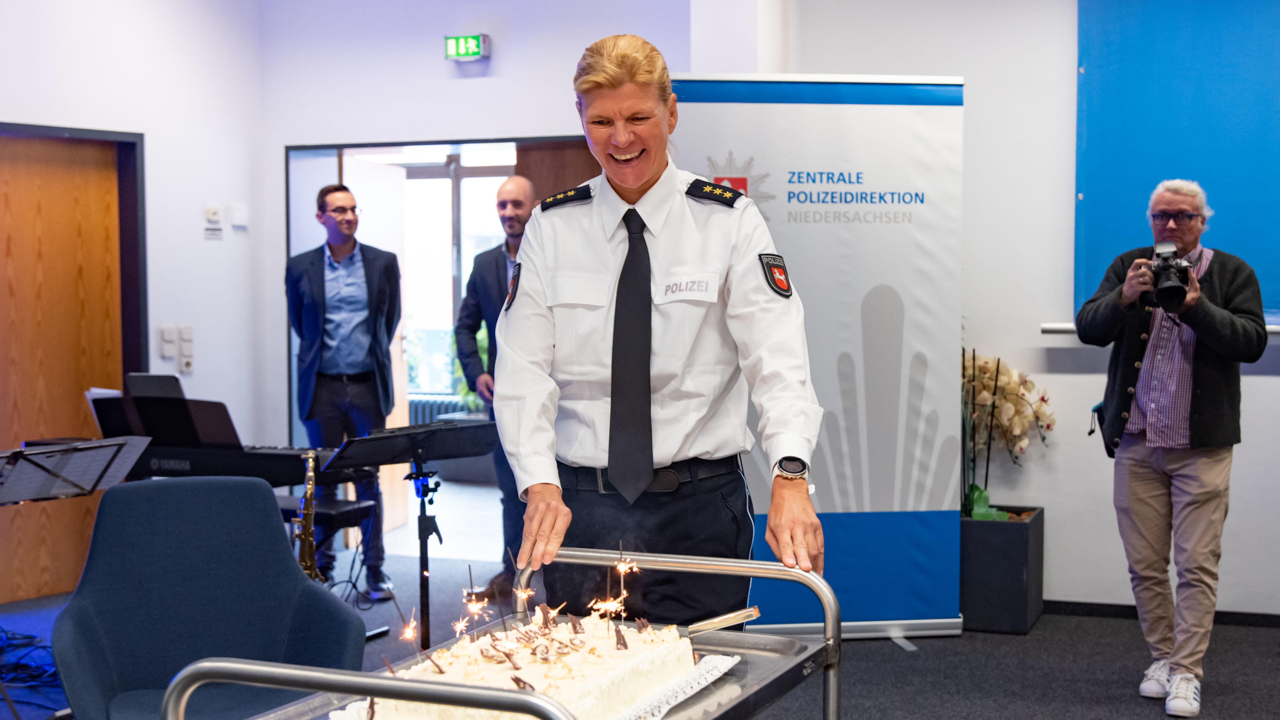 Den musikalischen Rahmen setzte wie so oft die Jazz-Combo des Polizeiorchesters Niedersachsen. Nach dem rund 60-minütigen Jubiläumsprogramm waren alle Gäste eingeladen, sich zur bewegten Geschichte „ihrer“ Dienststelle bei Kaffee und Kuchen auch noch einmal im persönlichen Gespräch auszutauschen.