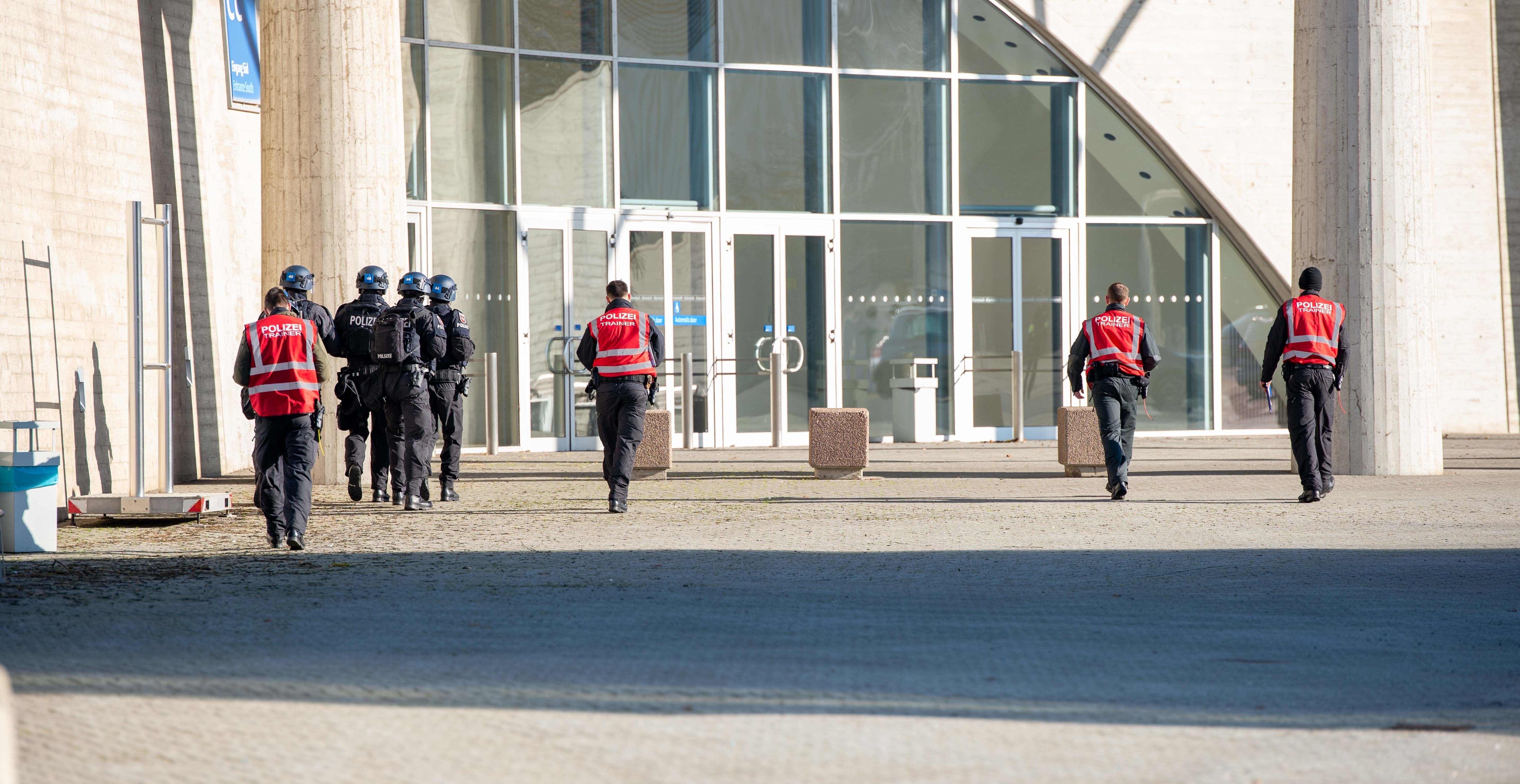 „Wir haben die Übung so angelegt, dass unsere polizeilichen Einsatzkräfte binnen weniger Augenblicke von einem eher störungsfreien Fußballeinsatz auf eine Situation mit bewaffneten Tätern, Toten und vielen Verletzten an einem anderen Ort umschalten mussten – eine sogenannte lebensbedrohliche Einsatzlage“, erklärte der Übungsleiter der Polizei vor dem Start der Übung. Damit es am Convention Center auf dem Messegelände möglichst realistisch aussehe, habe man sich zuvor mit der Johanniter-Akademie abgesprochen. „Von deren Seite wurden eine Vielzahl an Darstellerinnen und Darstellern derart geschminkt und hergerichtet, dass eine simulierte Verletzung auf den ersten Blick kaum von einer echten zu unterscheiden ist. Insofern boten wir auch ein anspruchsvolles Szenario für unsere Ersthelfer und die der Johanniter“, so der Übungsverantwortliche weiter.