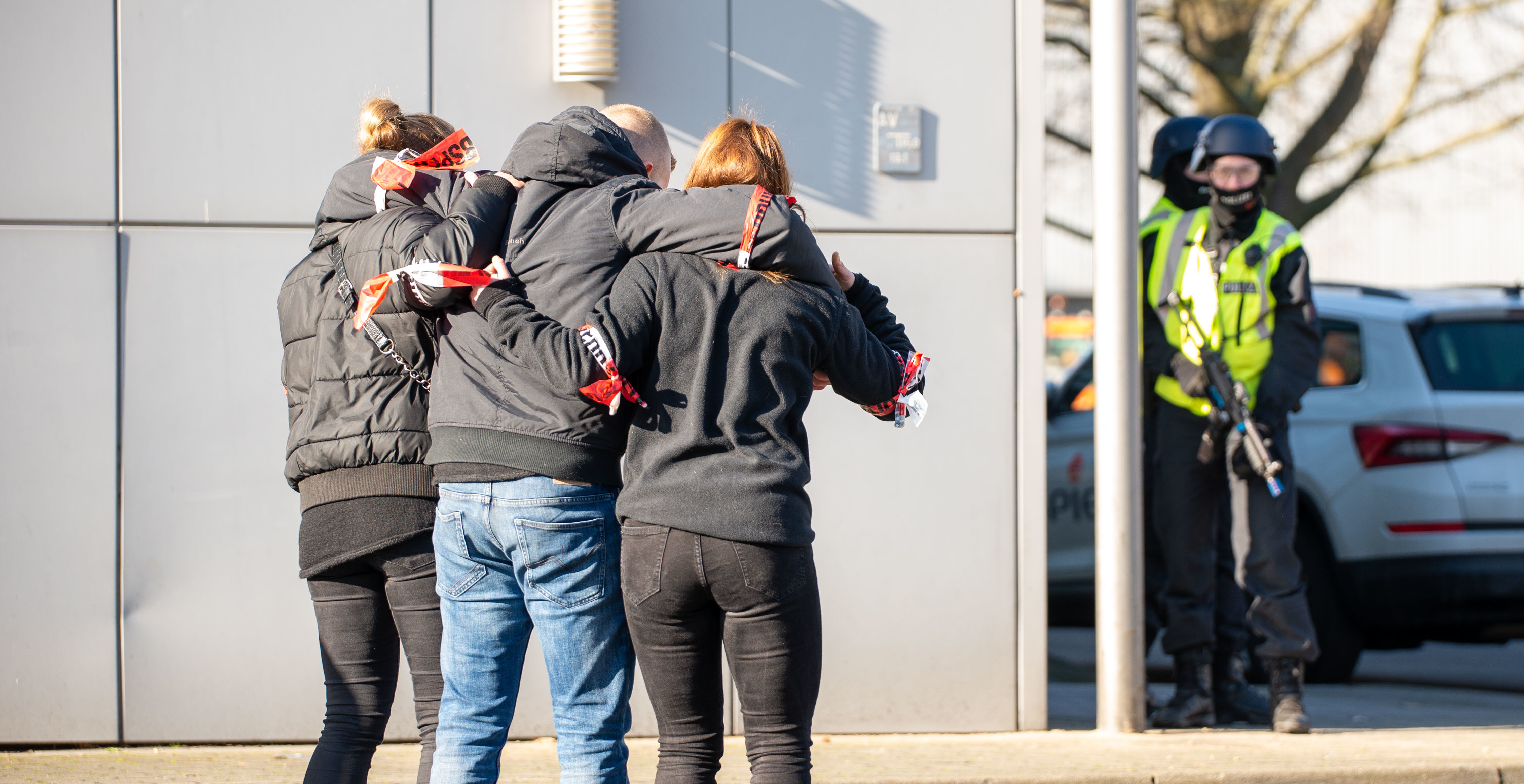 Was am 15. Februar als vermeintlicher Routineeinsatz an der Heinz-von-Heiden-Arena, der Heimat von Hannover 96, begann, endete für die Kolleginnen und Kollegen der 2. BPH Stunden später in einem simulierten Anschlagsszenario auf dem hannoverschen Messegelände. Am Ende waren es zusätzlich noch rund 100 Beteiligte, darunter weitere Einsatzkräfte der Polizei, Notfallsanitäter-Azubis von der Johanniter-Akademie Niedersachsen-Bremen und Mitarbeitende der JUH-Wache am Kabelkamp in Hannover, die sich in das Übungsszenario einbrachten.