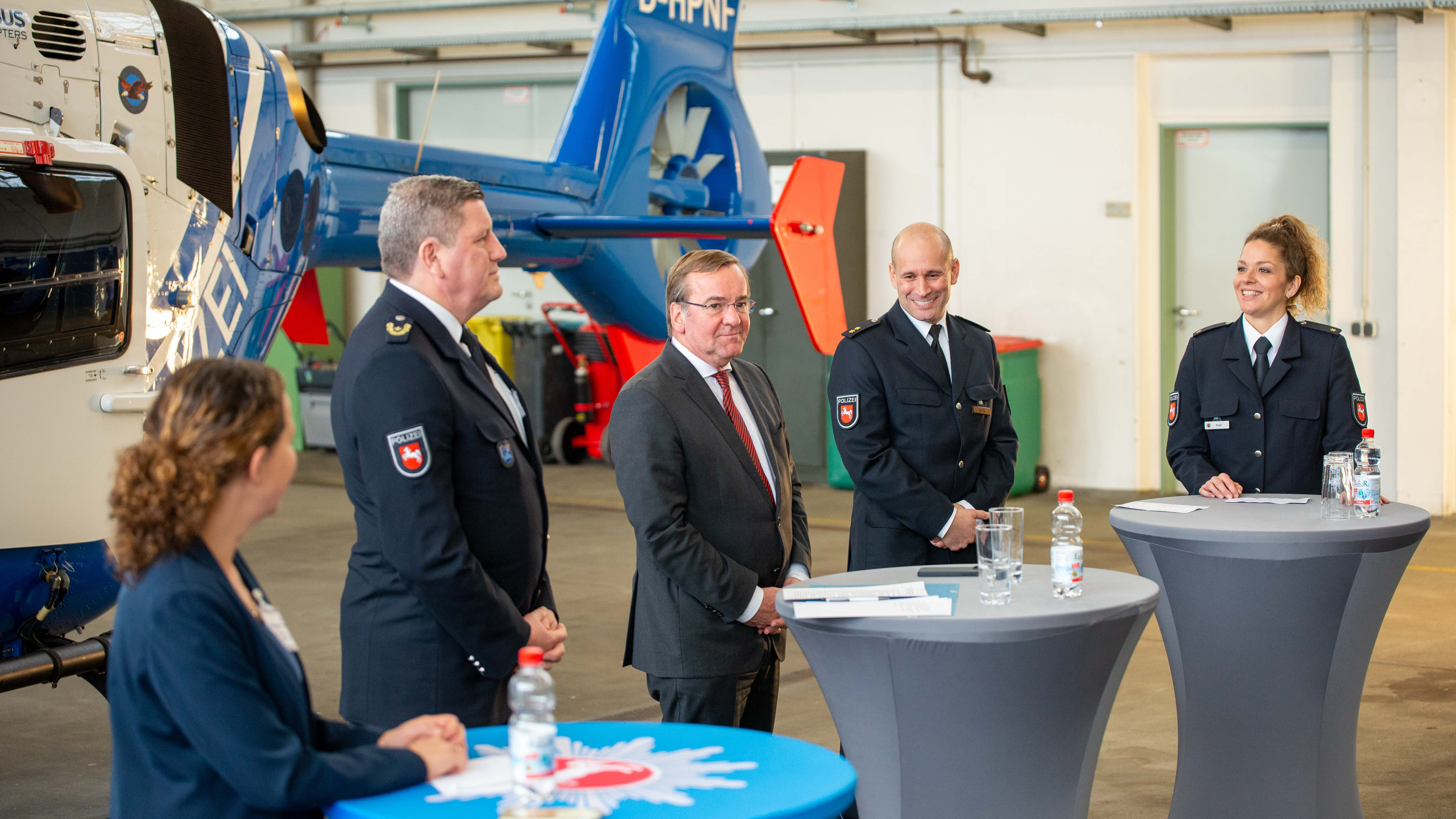 Der Niedersächsische Minister für Inneres und Sport, Boris Pistorius, sagte in seiner Begrüßung: „Die Polizeihubschrauberstaffel ist ein wertvoller Bestandteil der niedersächsischen Polizei und leistet mit ihrer Arbeit rund um die Uhr, an 365 Tagen im Jahr, einen wichtigen Beitrag für die Sicherheit der Bürgerinnen und Bürger. Neben ihrer täglichen Arbeit – der Suche nach Vermissten und der Fahndung nach gesuchten Personen – gibt es auch besondere Lagen, die den Einsatz der Hubschrauberstaffel erforderlich machen. Ich kann mich beispielsweise noch sehr gut an die Unterstützung im Rahmen der Waldbrandbekämpfung im vergangenen September im Harz erinnern. Bei der Bekämpfung eines großflächigen Feuers am Brocken (Harz) flogen sie binnen weniger Tage rund 100 Einsätze – eine beeindruckende Leistung und wichtiger Beitrag, um das Feuer unter Kontrolle zu bekommen! Die dafür nötige Technik haben wir ein Jahr zuvor im Rahmen des niedersächsischen „Aktionsplan zur Waldbrandbekämpfung“ beschafft. Dies zeigt einmal mehr, wie wichtig regelmäßige Investitionen in moderne Technik sind, damit unsere Polizei bestmöglich für alle Einsätze und Herausforderungen gerüstet ist. Aktuell läuft ein Vergabeverfahren für zwei neue Hubschrauber der Vier-Tonnen-Klasse, die zukünftig unsere über 20 Jahre alten Maschinen ersetzen sollen. Allerdings ersetzen diese nicht bloß ihre Vorgängermodelle, sondern verschaffen uns insgesamt noch mehr Möglichkeiten bei der Bekämpfung von Flächenbränden aus der Luft oder dem Transport von Spezialeinheiten. Hierbei kooperieren wir eng mit unserem Nachbarbundesland Mecklenburg-Vorpommern, das ebenfalls in zwei neue Maschinen investiert. Mit dieser Kooperation sparen beide Bundesländer Sach- und Personalkosten – eine klassische Win-win-Situation."