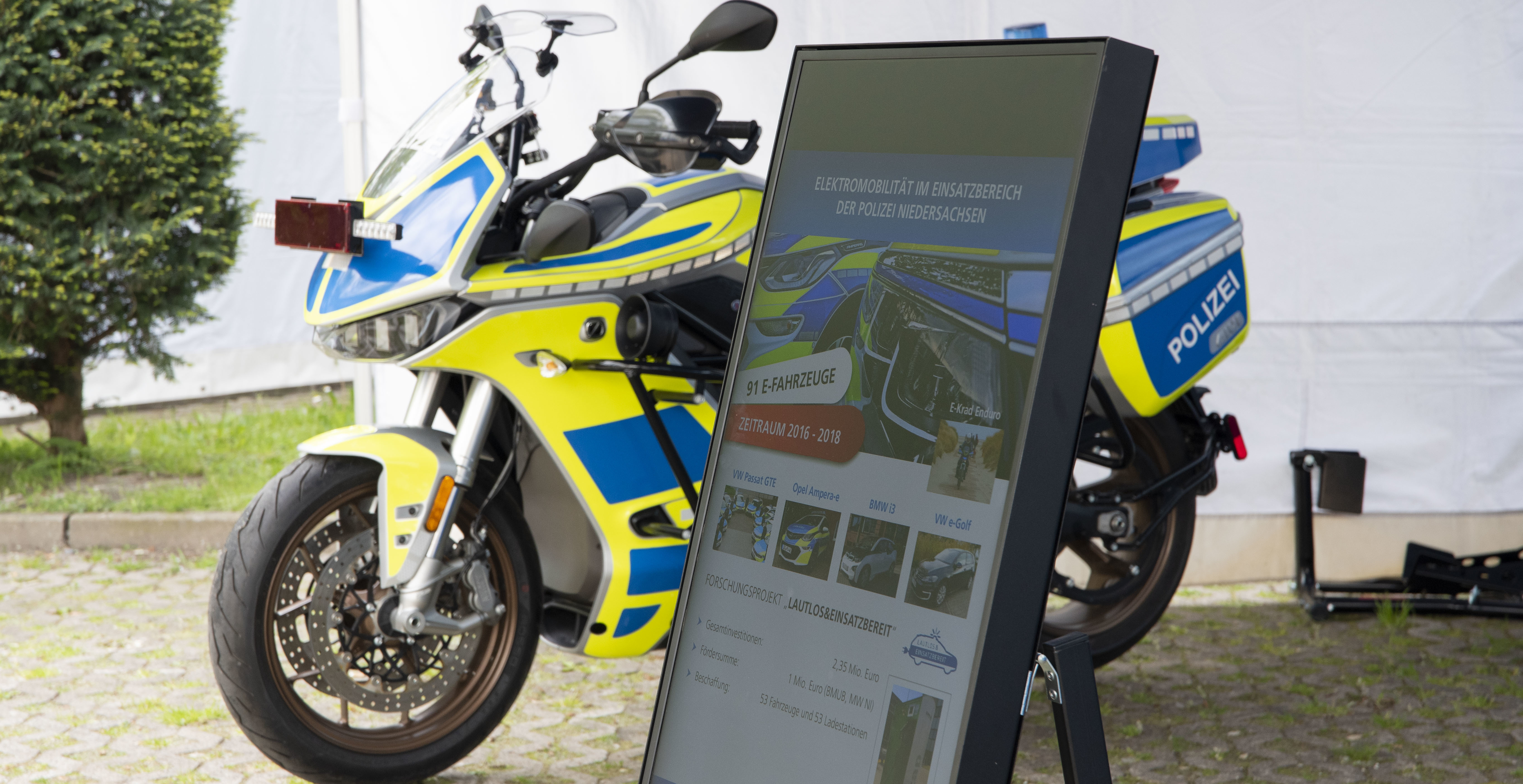 Dazu Polizeipräsident Uwe Lange: „Bei den von Millionenbudgets flankierten Bemühungen, den polizeilichen Fuhrpark sowohl ökologisch als auch ökonomisch zu gestalten, profitiert die Organisation in starkem Maße von den Ergebnissen eines vor zwei Jahren erfolgreich abgeschlossenen Forschungsprojektes (Name: lautlos&einsatzbereit). Mit Unterstützung der Technischen Universität Braunschweig sowie des Niedersächsischen Forschungszentrums Fahrzeugtechnik (NFF) konnte wissenschaftlich nachgewiesen werden, dass Elektromobilität auch in extremen Anwendungsbereichen wie denen in der Polizei mit ihren 24/7-Anforderungen funktioniert. Damit sind wir in Deutschland nicht nur ganz weit vorne, sondern im Zuge der Flottenelektrifizierung inzwischen auch gefragte Expertinnen und Experten.“